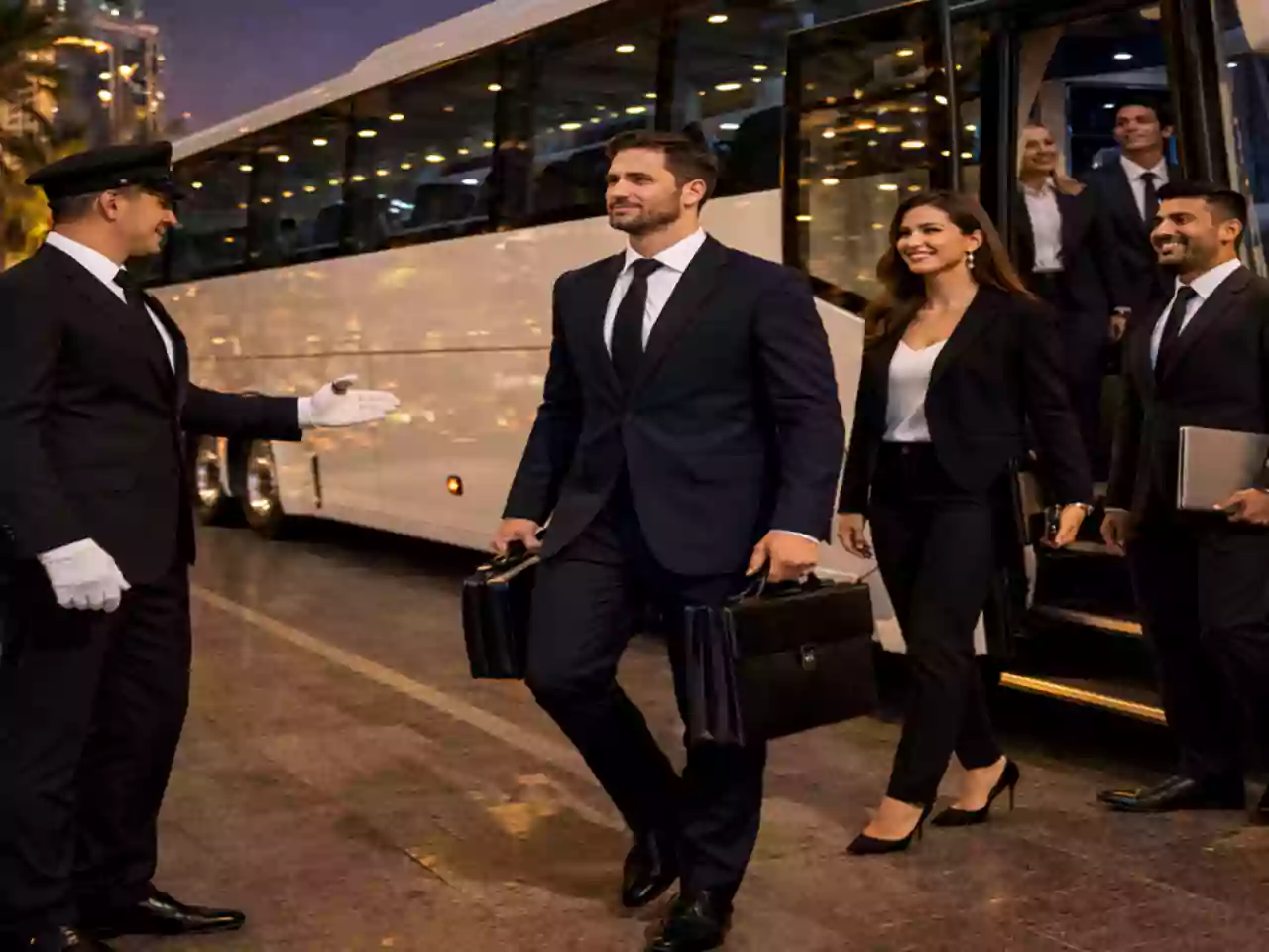 Streamline your business operations in just 550 to 600 AED with our dedicated corporate bus rental services. From daily staff shuttles to conference transportation, we ensure your team travels professionally and punctually across Dubai, Abu Dhabi, and Sharjah. Choose from 12-seater vans to 50-seater coaches with flexible invoicing and dedicated account managers.